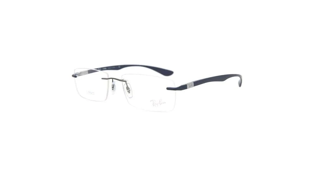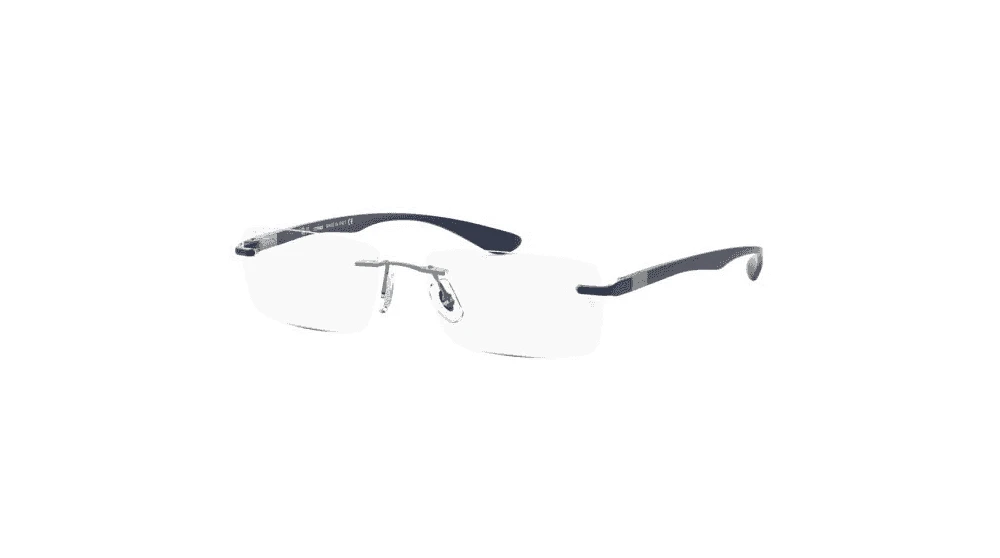 The RX8724 is a rectangular rimless frame that’s made from high-quality, lightweight titanium and available in 5 different colour options. The unisex frame also provides a snug fit around the ears and nose for an adaptive fit and is finished with metal pin detailing and the Ray-Ban logo embossed on the temples.Â