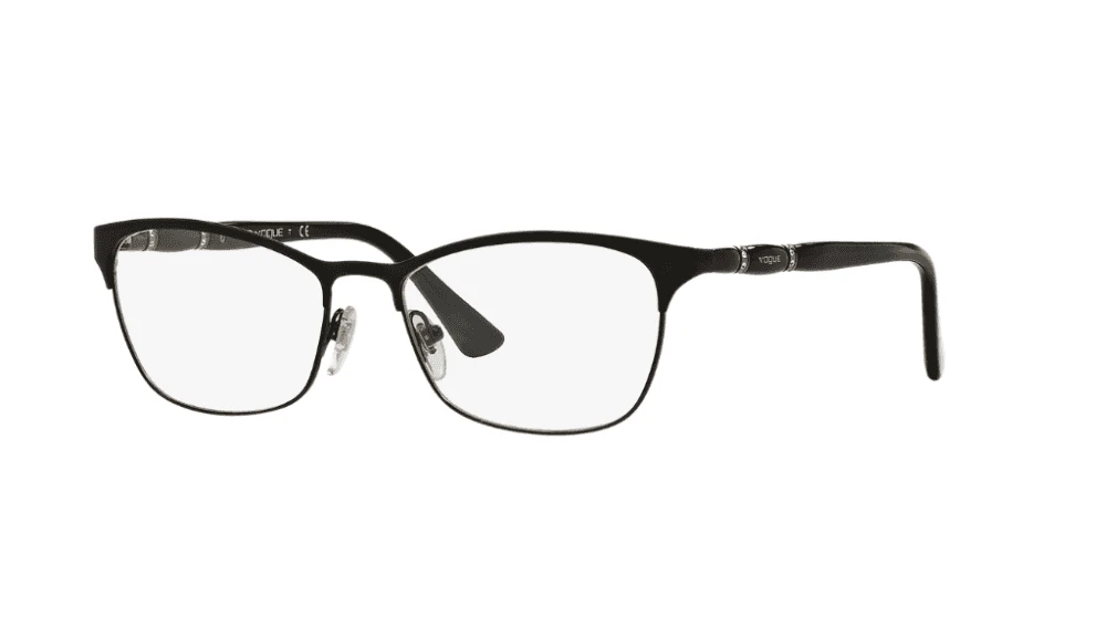 Part of the brand’s famed cat-eye frame collection, the Vogue Eyewear VO3987B is a full-rimmed, women’s frame that offers a striking, retro appearance.